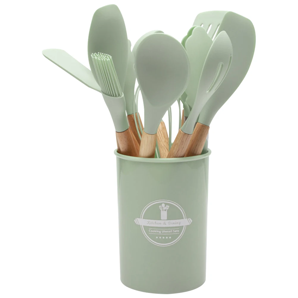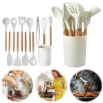 Upgrade your cooking experience with this 12-piece Silicone Kitchen Utensil Set. Featuring heat-resistant, non-stick silicone heads and sturdy wooden handles, these spatulas and tools make stirring, flipping, and serving a breeze. Durable, safe, and stylish, this set is perfect for any kitchen, helping you cook with ease and confidence.