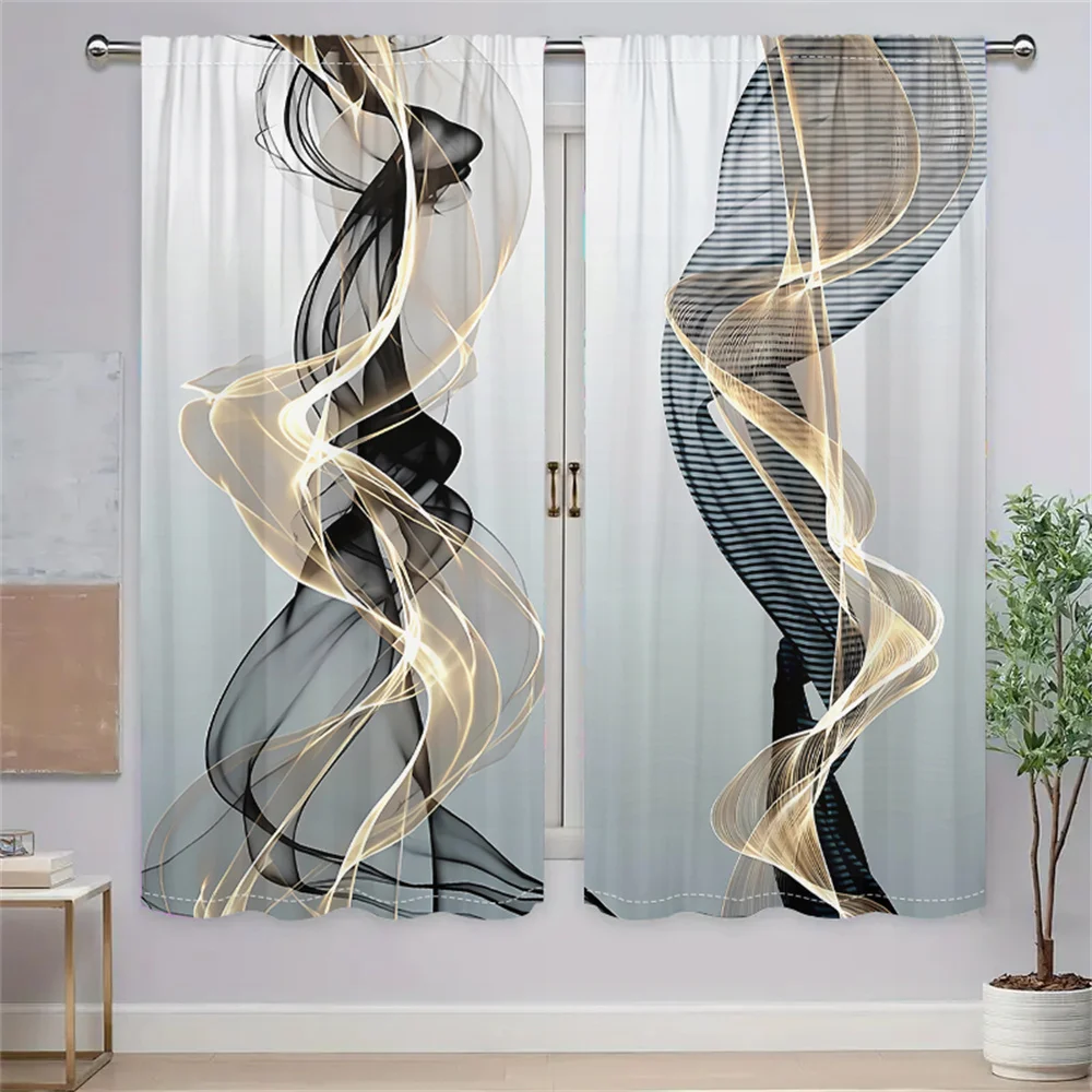 Elevate your home décor with this 2-piece set of Abstract Black & Gold Curtains. Designed with a sleek streamline pattern, these modern minimalist panels bring sophistication and style to any living room or bedroom. Crafted from high-quality fabric, they provide privacy while enhancing your space with a bold artistic flair. Perfect for contemporary interiors.