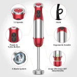 Simplify your kitchen tasks with this 5-in-1 1000W Handheld Blender. With 12 adjustable speeds, it effortlessly blends, purees, whips, and mixes soups, sauces, and even cake batter. Multi-purpose and easy to use, it’s the perfect tool for quick, precise, and versatile food preparation.