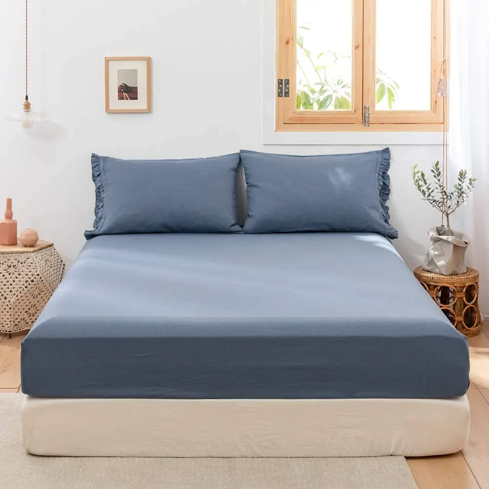 Upgrade your sleep with the Simple&Opulence Linen Cotton Fitted Sheet, crafted from natural flax and breathable cotton for year-round comfort. Its 14-inch deep pocket design ensures a secure fit on most mattresses, while the soft, moisture-wicking fabric keeps you cool in summer and cozy in winter. Perfect for adding a touch of effortless luxury to your bedding.