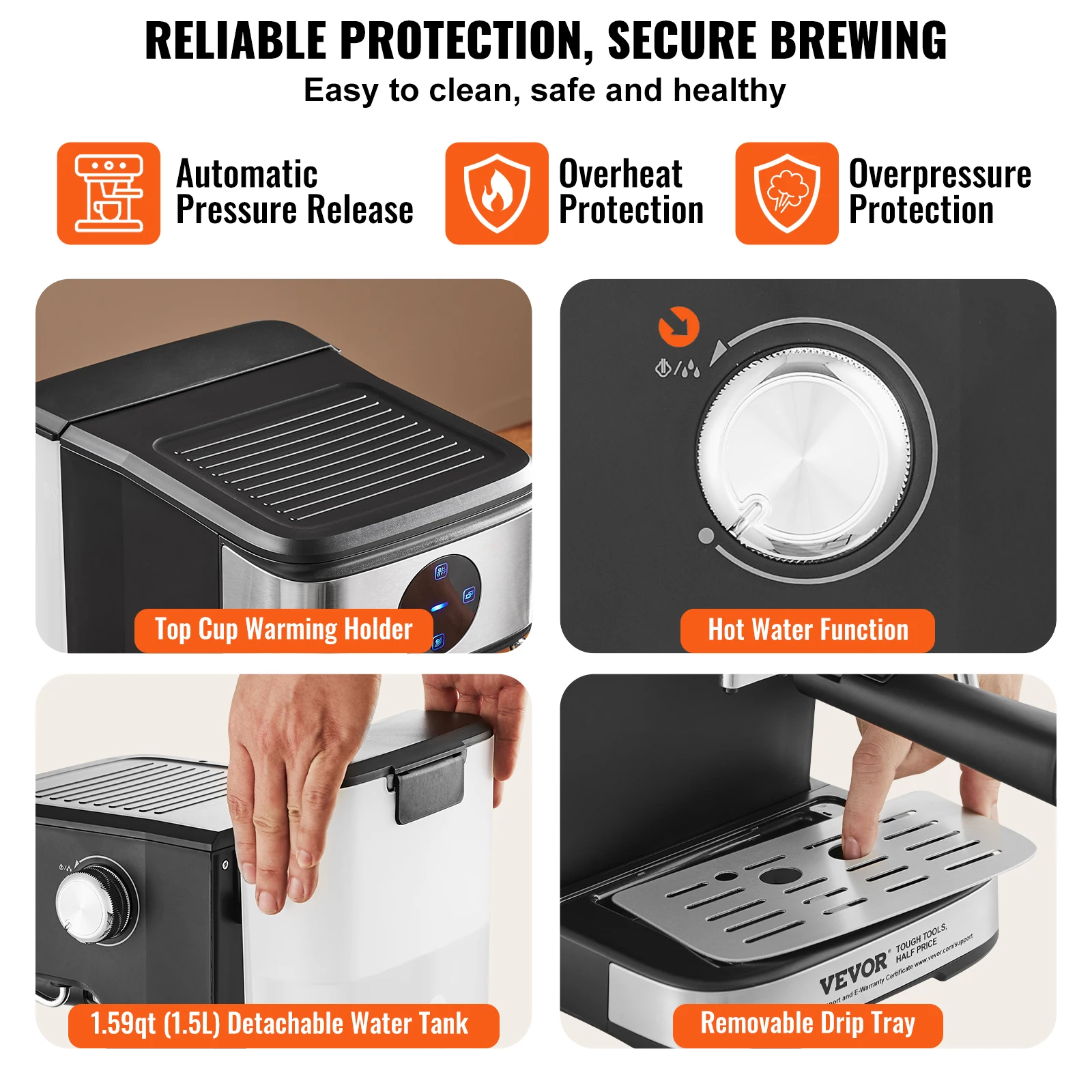 Brew café-quality coffee at home with the VEVOR 15-bar espresso machine. This semi-automatic espresso maker features a milk frother and steam wand for creamy lattes, cappuccinos, and more. Stylish, powerful, and perfect for coffee lovers seeking professional results.